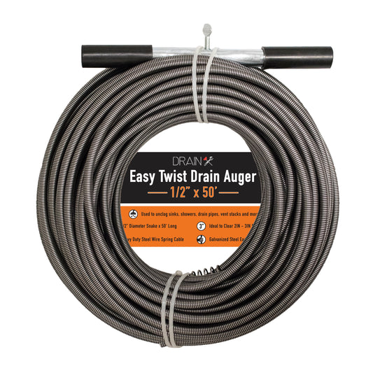 50ft Easy Twist Drain Auger (1/2" Diameter)