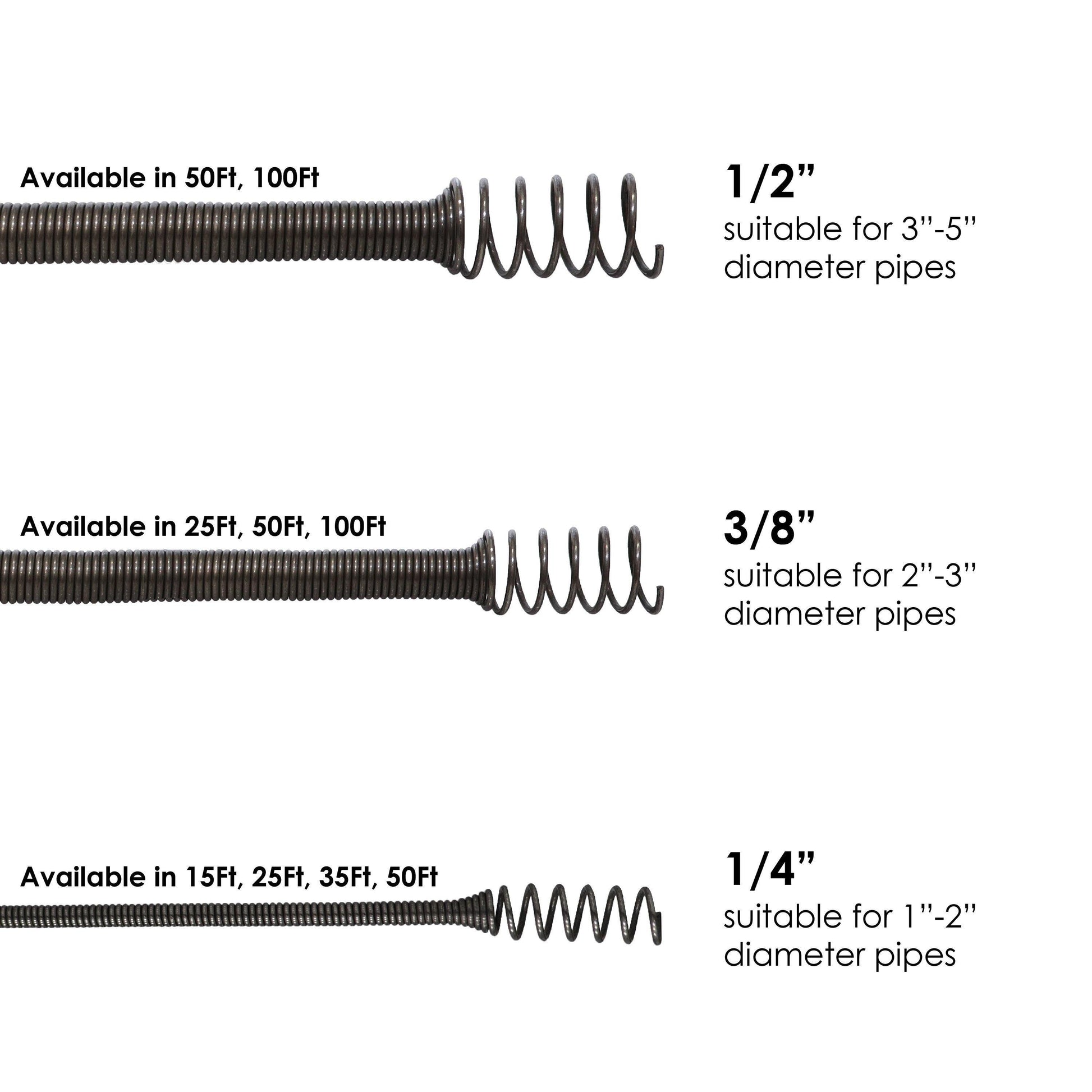 - 100 FT 3/8 Inch diameter Drainx Easy Twist augers, essential plumbing kit is flexible and helps clean up stubborn clogs