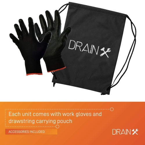The Drainx Pro 50-ft Drum Auger Plumbing Snake is a great tool for beginners or master plumbers. What separates us from other drain augers on the market is our dedication to safety and durability. Most tools may work on the initial clog but eventually the grip handle might crack or the snake might break after prolonged use. You won't have those concerns with the Drainx Pro Drum Auger. If for any reason those issues occur or any issue makes the item defective, you are covered by our lifetime warranty. Furthermore our tool will easily clear your drain clogs from your kitchen sink, bathroom sink, bathtub, shower, and drainage pipes. This tool has been designed to use with 1-1/4" through 3" pipes. Lastly, with every order of the DrainX Pro Drum Auger, you will receive work gloves and a zipper carrying pouch.