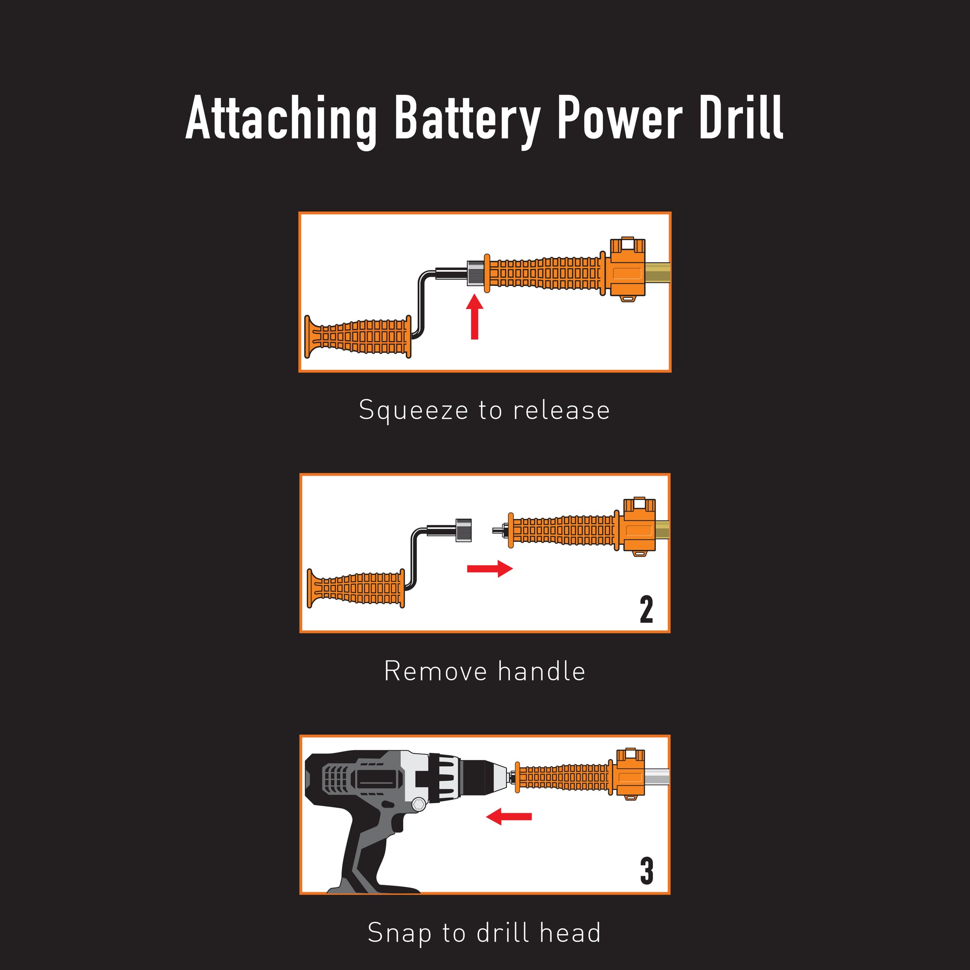 - Steel 3/8 Inch auger cable with bulb head for catching and clearing clog residue.