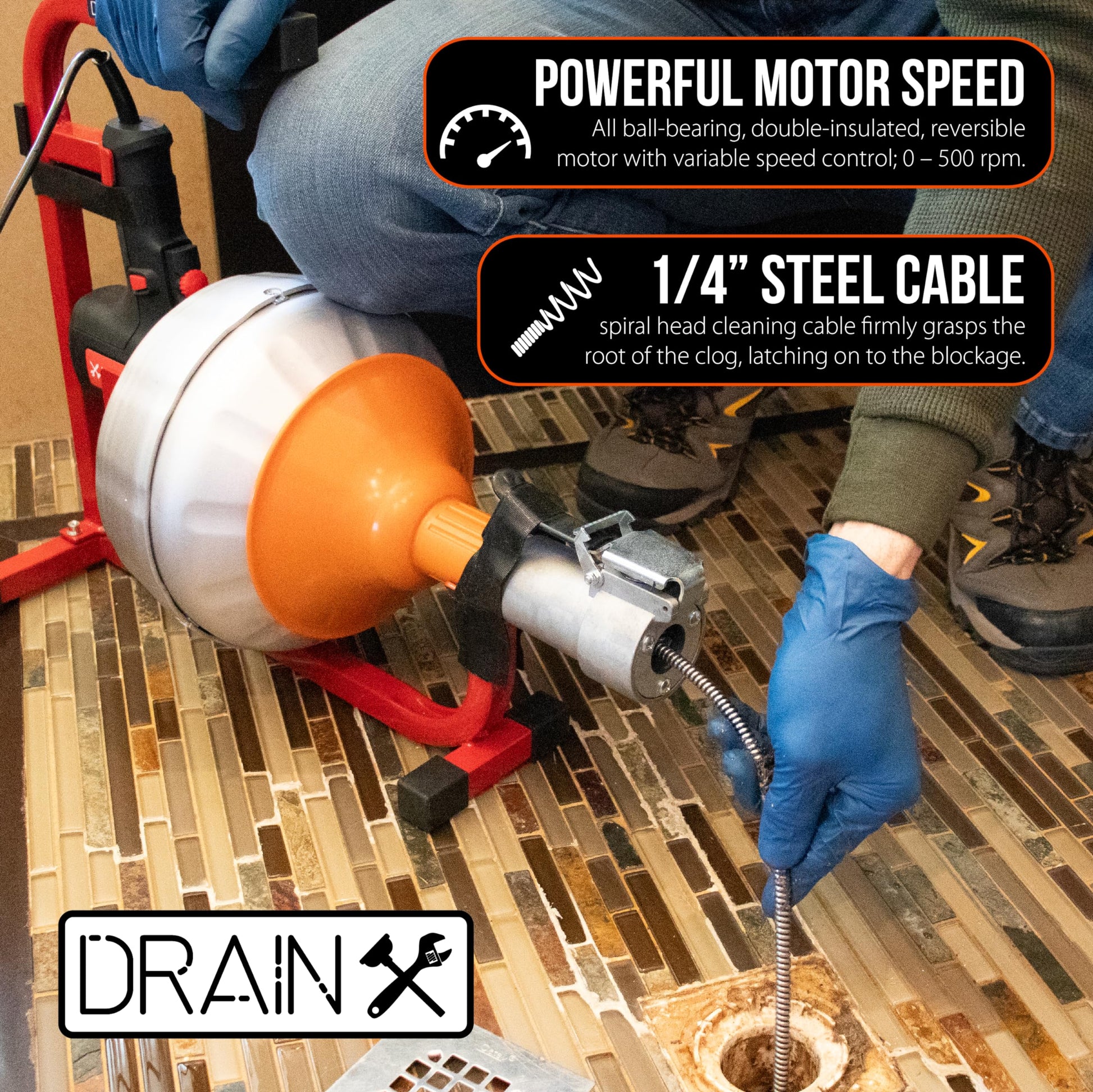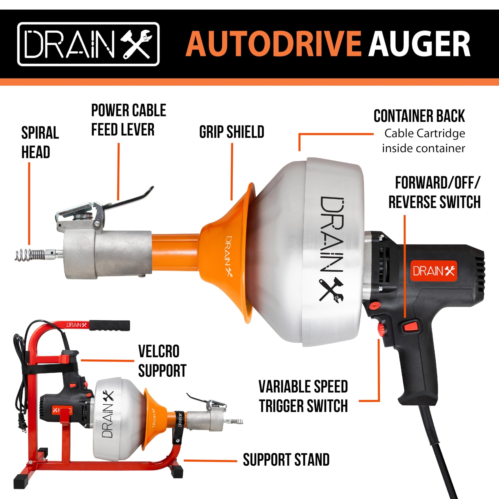 DrainX XS50 AutoDrive Electric Drain Cleaning Machine, 1/4" Cable, 50 FT