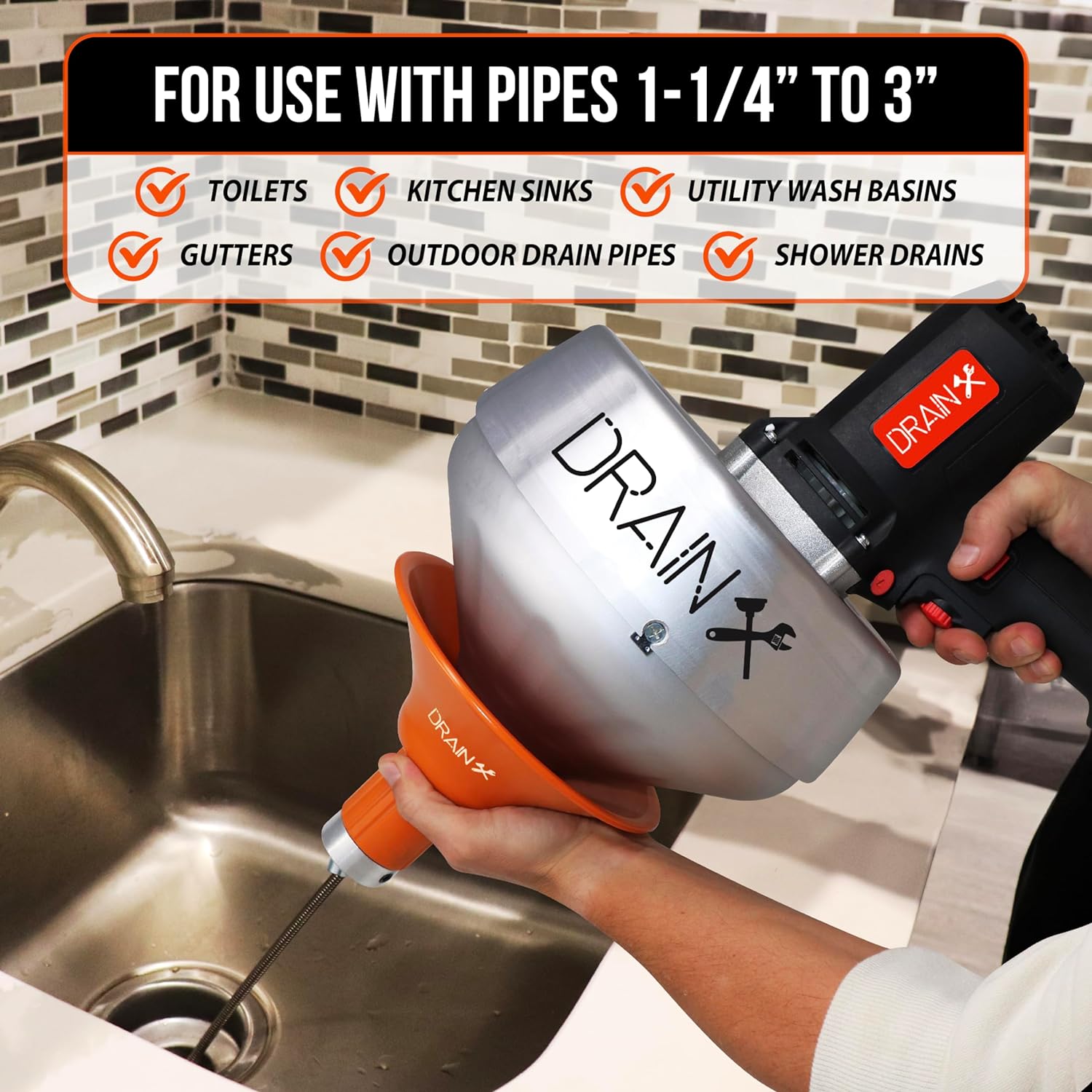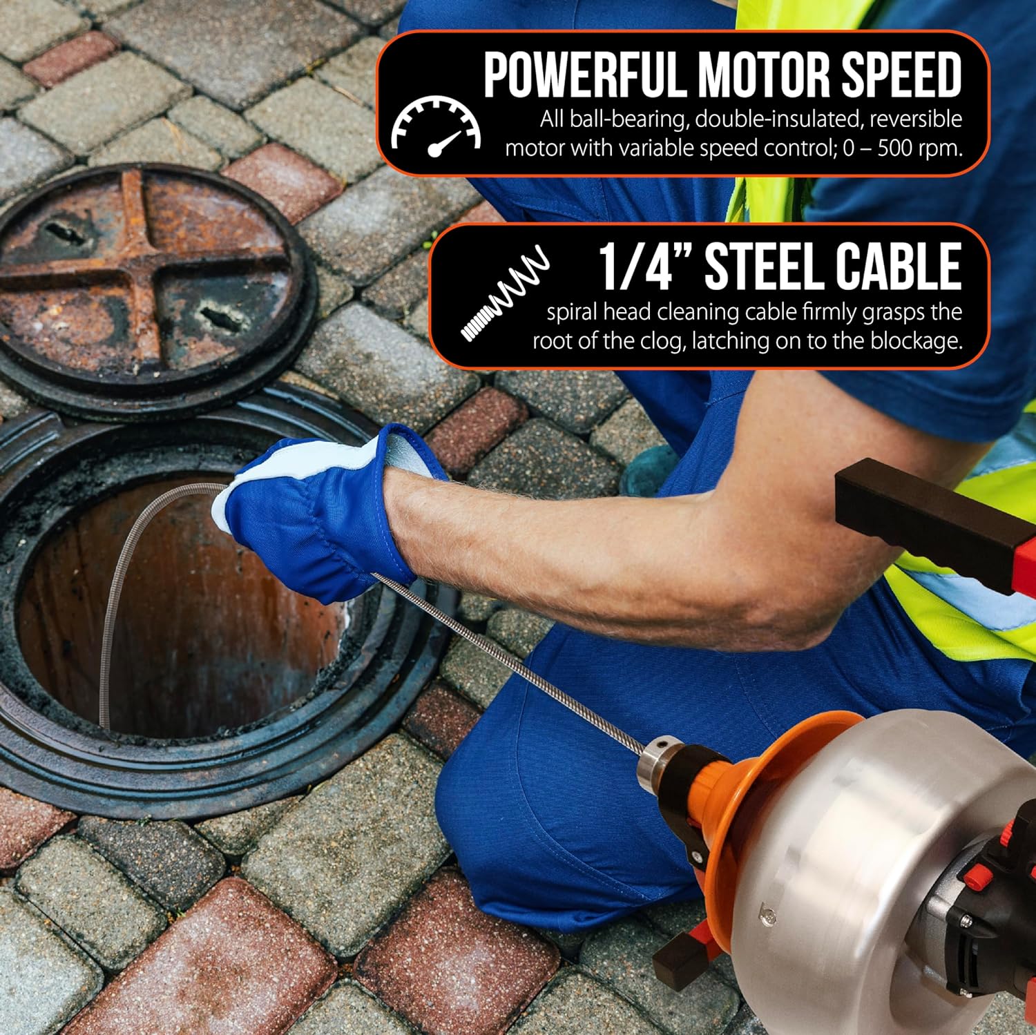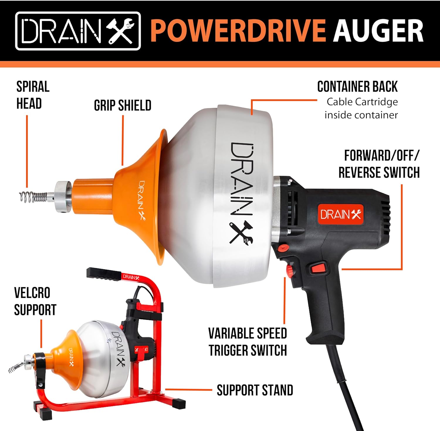 DrainX XS50 Electric  Drum Auger, 1/4" Cable